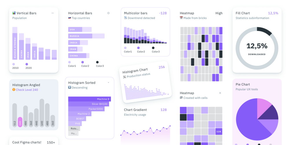 Stop wasting time building charts from scratch. Our Charts UI kit equips you with a massive library of 150+ customizable chart templates and infographics, ready to drop into your Figma projects.