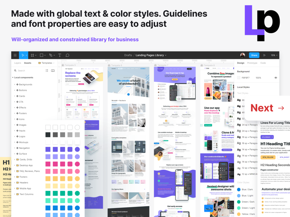 Figma landing pages templates based on constrained & organized components used to produce effective websites. This kit contains a variety of web design creative ideas to save your time on prototyping from scratch. Create trendy, colorful & inspiring sites with no hassle.